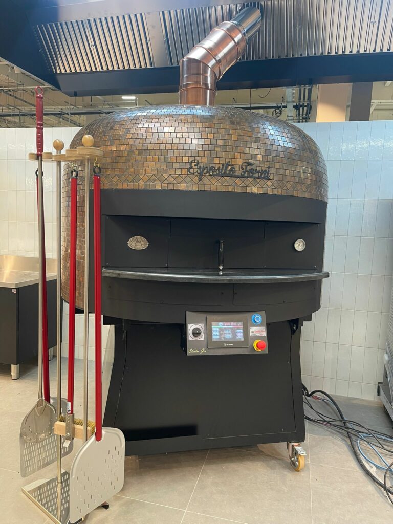 Monsieur Mollier s’est déclaré pleinement satisfait tant par la qualité du matériel que par le professionnalisme de l’installation. Le rendu esthétique, avec son habillage en mosaïque cuivre, apporte une touche moderne et élégante à l’espace de production, tout en valorisant l’offre pizza du magasin.