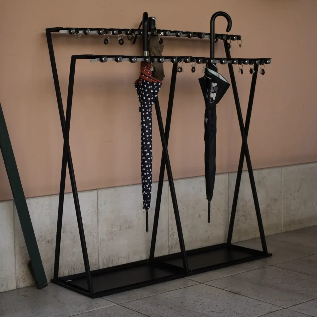Il permet de gérer efficacement les parapluies des visiteurs tout en garantissant sécurité, organisation et confort d’utilisation.